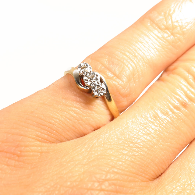 Edwardian 18K 18Ct 750 Solid Yellow Gold Platinum Three White Trilogy Round Cut Natural Diamond Wedding Engagement Ring Size M 1/2 - 6 1/4