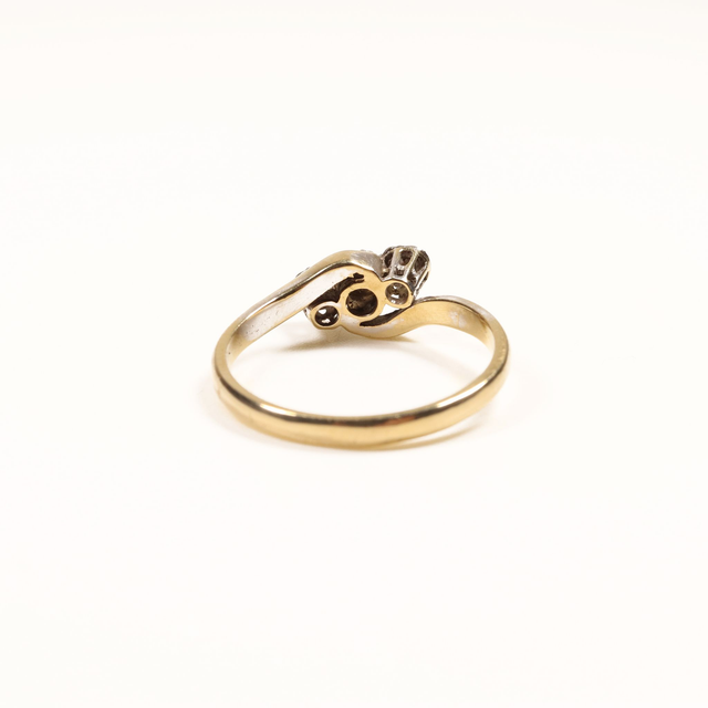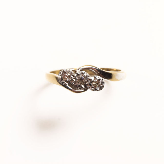 Gemstones: 3x (1.5mm) round cut white diamonds.