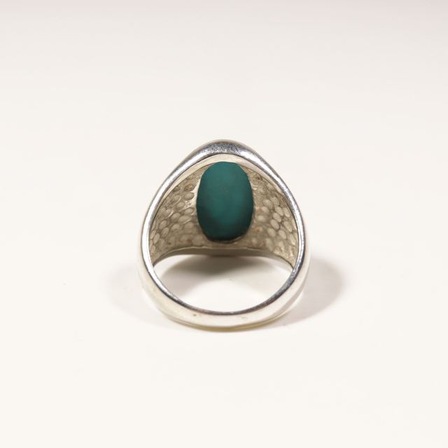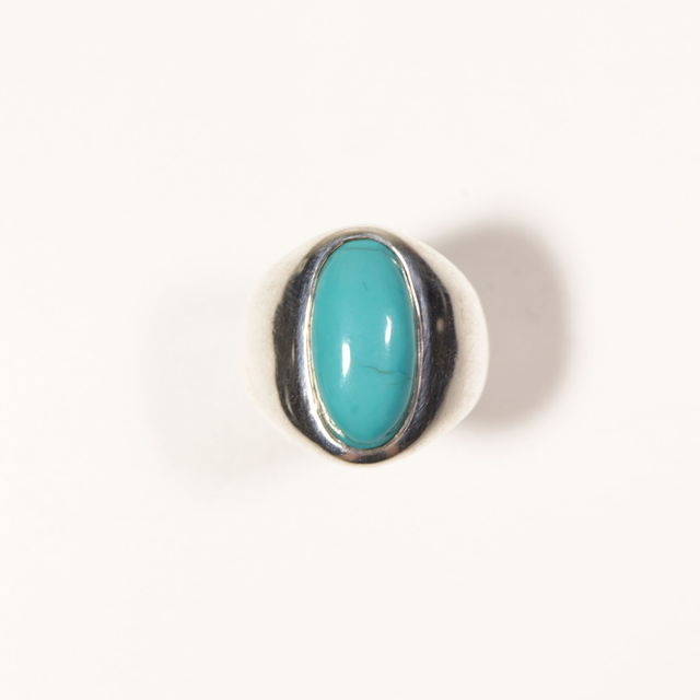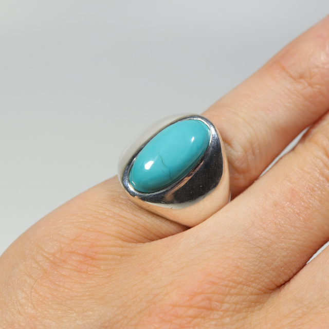 Heavy Sterling Silver 925 Natural Blue Turquoise Oval Cabochon Cut Gemstone Mens Navajo Boho Design Ring Size S - 9 1/8