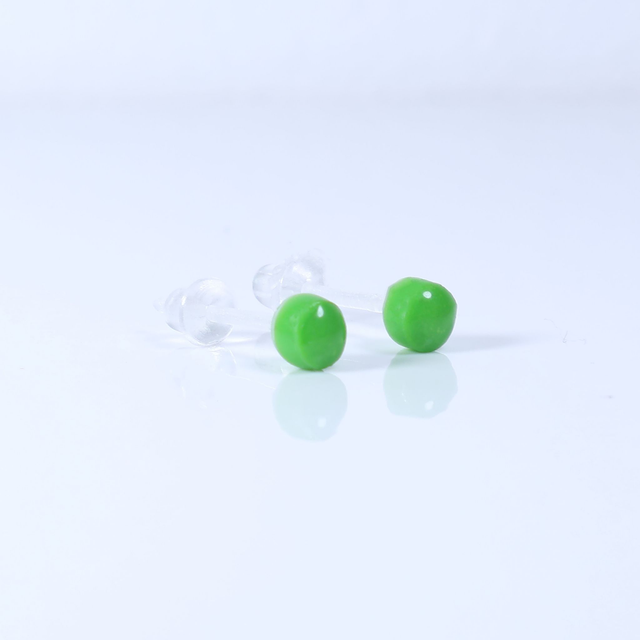 Hypoallergenic 3mm Small Solid Green Round Cut Polymer Clay Plastic Back Stud Earrings With Designer Carbon Fiber Jewellery Box