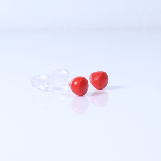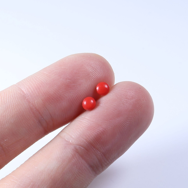 Hypoallergenic 3mm Small Solid Red Round Cut Polymer Clay Plastic Back Stud Earrings With Designer Carbon Fiber Jewellery Box