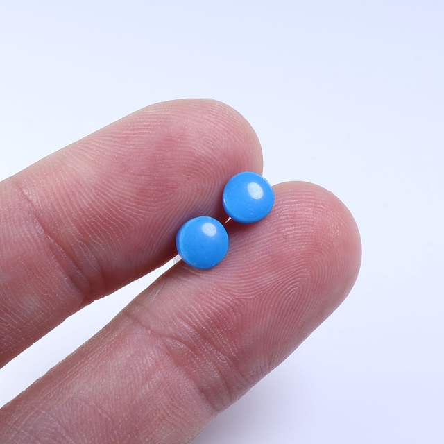 Hypoallergenic 6mm Medium Solid Blue Round Cut Polymer Clay Plastic Back Stud Earrings With Designer Carbon Fiber Jewellery Box