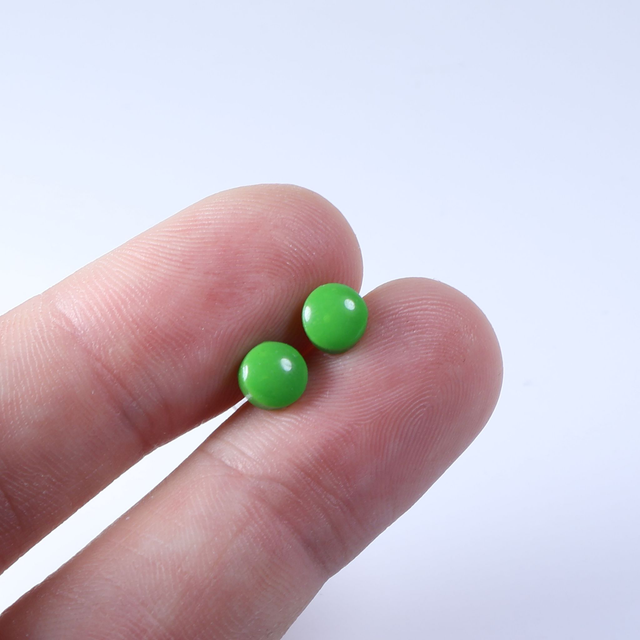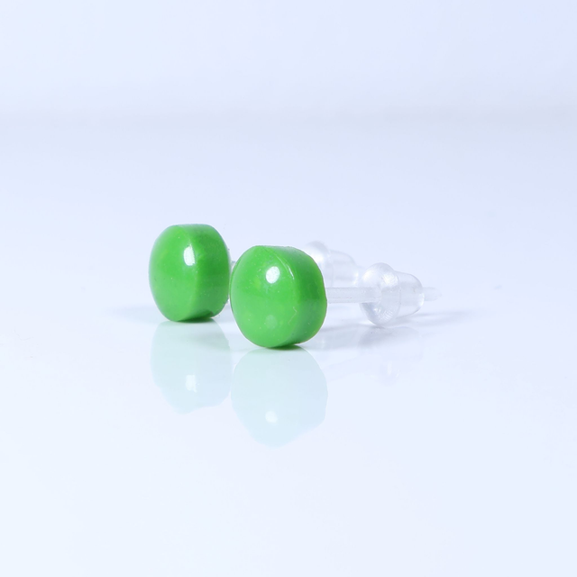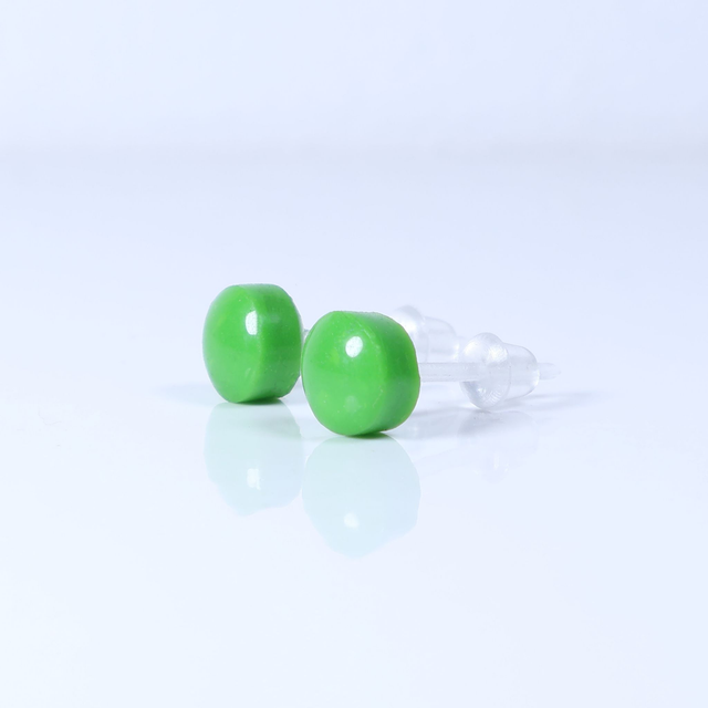 Hypoallergenic 6mm Medium Solid Green Round Cut Polymer Clay Plastic Back Stud Earrings With Designer Carbon Fiber Jewellery Box
