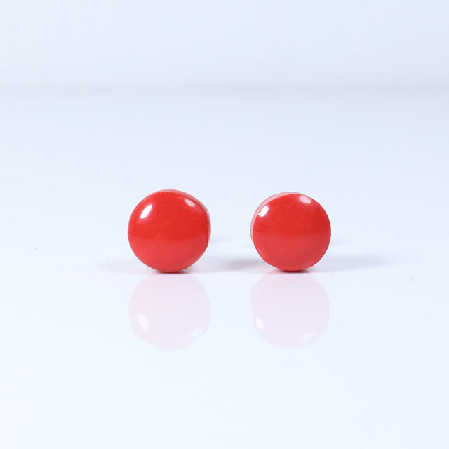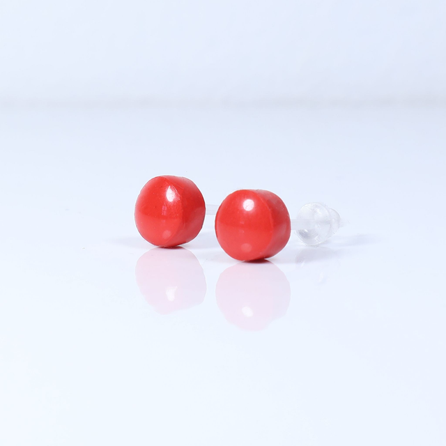 Hypoallergenic 6mm Medium Solid Red Round Cut Polymer Clay Plastic Back Stud Earrings With Designer Carbon Fiber Jewellery Box