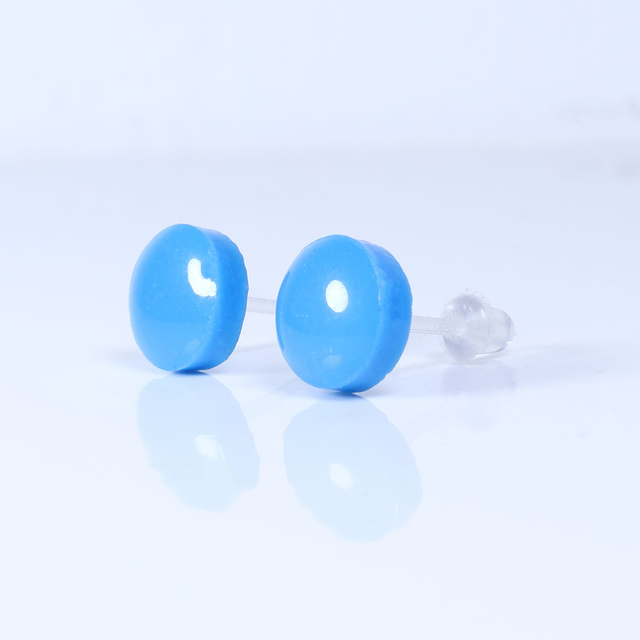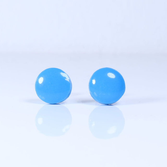 Hypoallergenic 8mm Large Solid Blue Round Cut Polymer Clay Plastic Back Stud Earrings With Designer Carbon Fiber Jewellery Box