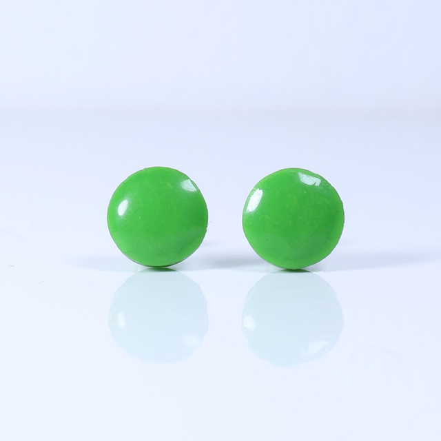 Hypoallergenic 8mm Large Solid Green Round Cut Polymer Clay Plastic Back Stud Earrings With Designer Carbon Fiber Jewellery Box