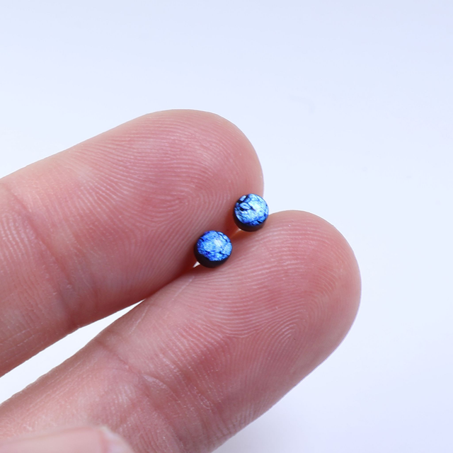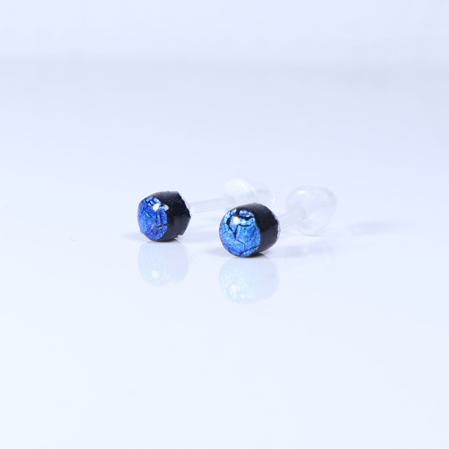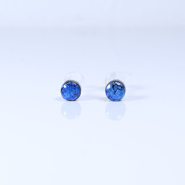 Hypoallergenic Small Electric Cracked Deep Blue Black Polymer Clay Plastic Back Stud Earrings With Designer Carbon Fiber Jewellery Box