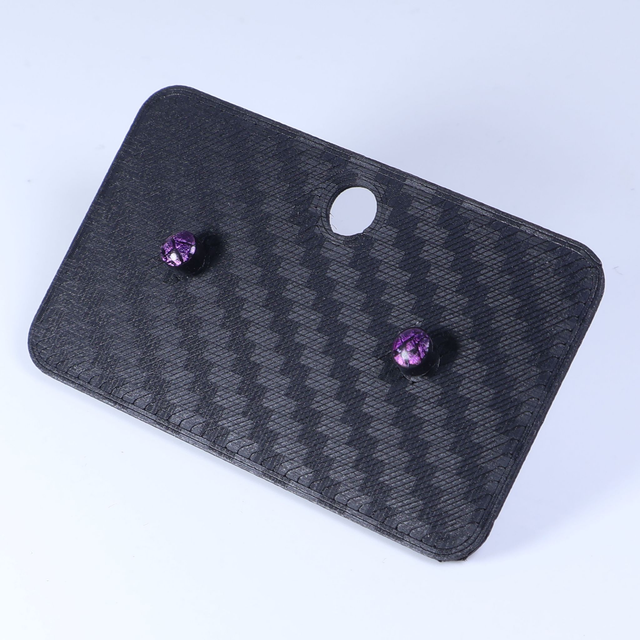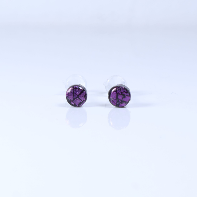 Hypoallergenic Small Electric Cracked Plum Purple Black Polymer Clay Plastic Back Stud Earrings With Designer Carbon Fiber Jewellery Box