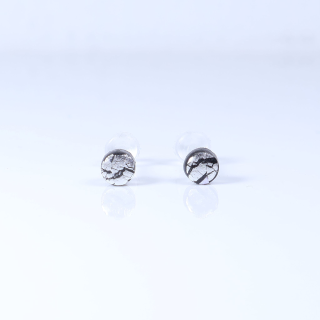 Hypoallergenic Small Electric Cracked Silver Black Polymer Clay Plastic Back Stud Earrings With Designer Carbon Fiber Jewellery Box