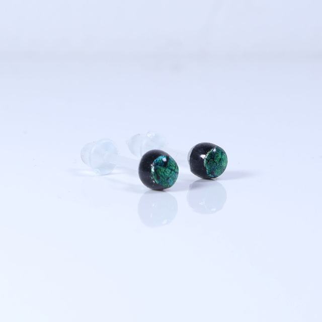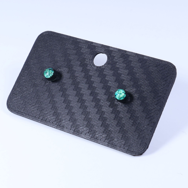 Hypoallergenic Small Vibrant Electric Cracked Green Black Polymer Clay Plastic Back Stud Earrings With Designer Carbon Fiber Jewellery Box