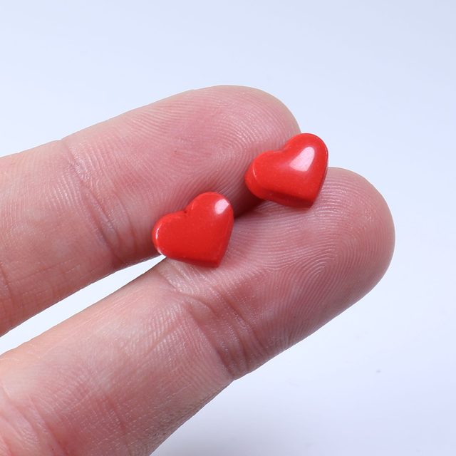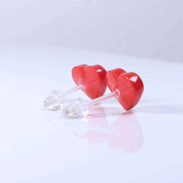 Hypoallergenic Solid Strawberry Red Sweet Heart Cut Polymer Clay Plastic Back Stud Earrings With Designer Carbon Fiber Jewellery Box