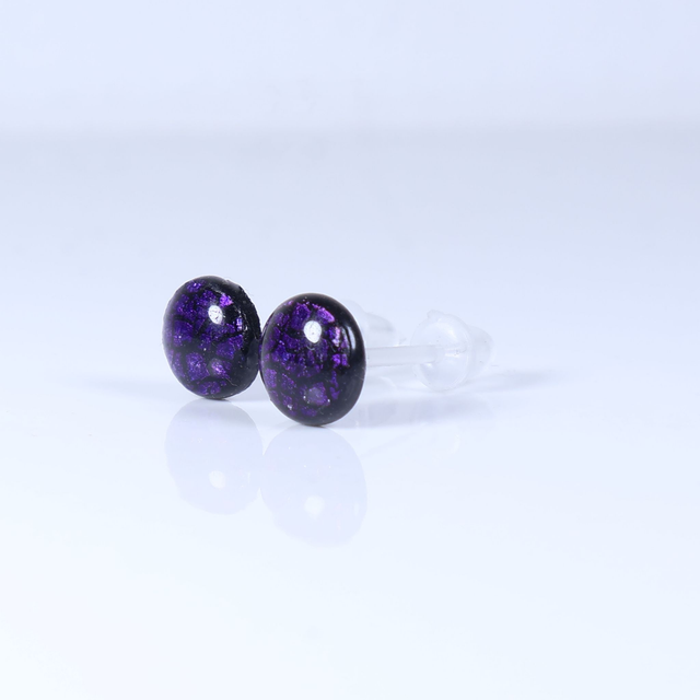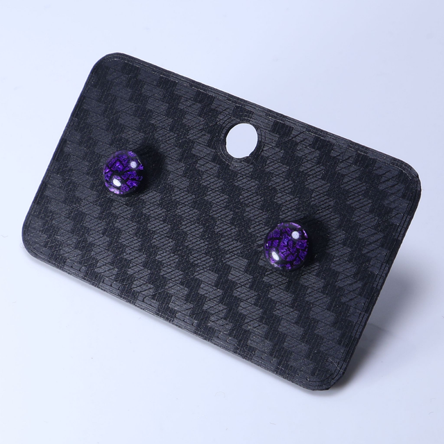 Hypoallergenic Vibrant Electric Cracked Dark Purple Polymer Clay Plastic Rubber Back Stud Earrings With Designer Carbon Fiber Jewellery Box