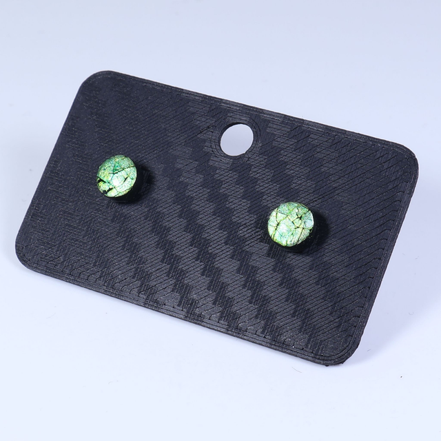Hypoallergenic Vibrant Electric Cracked Dark Purple Polymer Clay Plastic Rubber Back Stud Earrings With Designer Carbon Fiber Jewellery Box (1)