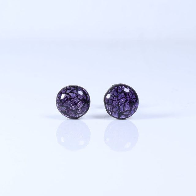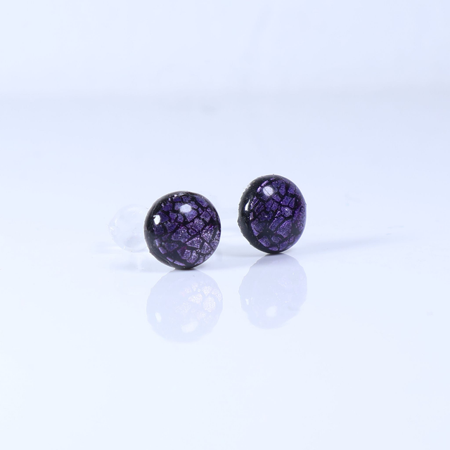 Hypoallergenic Vibrant Electric Cracked Lavender Purple Polymer Clay Plastic Back Stud Earrings With Designer Carbon Fiber Jewellery Box