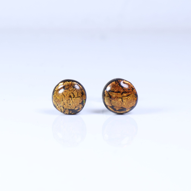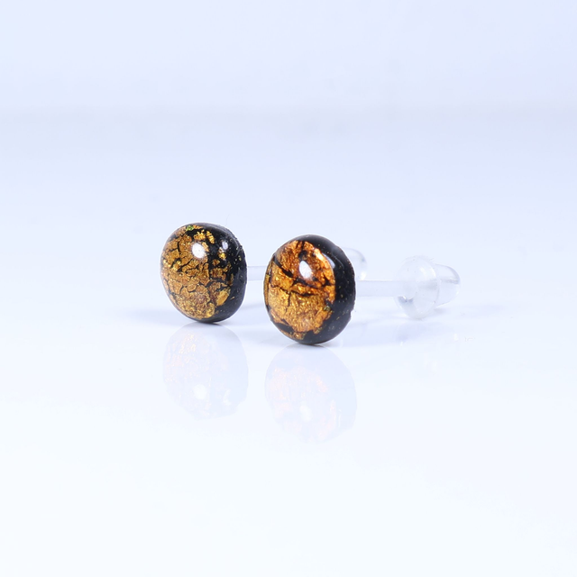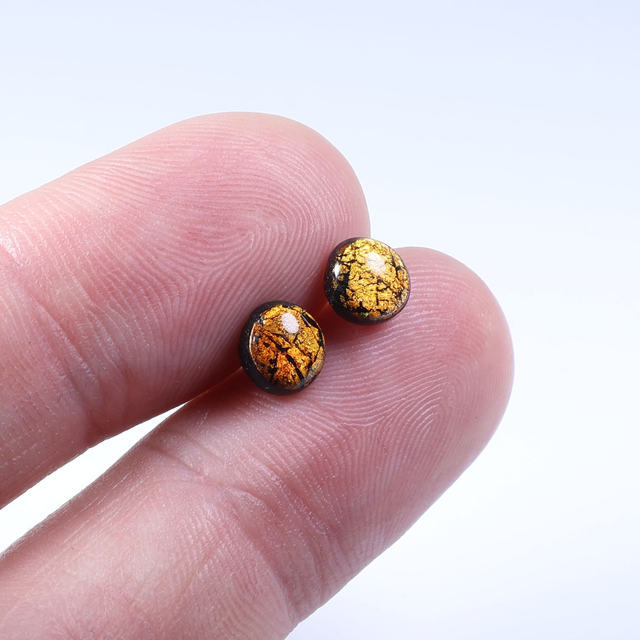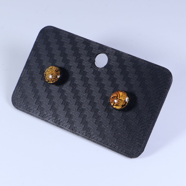 Hypoallergenic Vibrant Electric Cracked Orange Black Polymer Clay Plastic Rubber Back Stud Earrings With Designer Carbon Fiber Jewellery Box