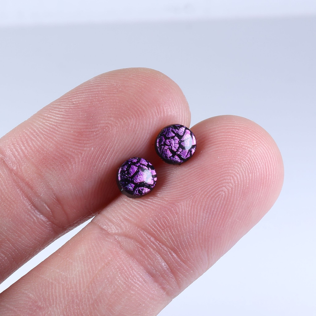 Hypoallergenic Vibrant Electric Cracked Plum Purple Polymer Clay Plastic Rubber Back Stud Earrings With Designer Carbon Fiber Jewellery Box