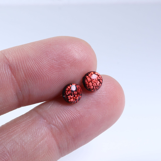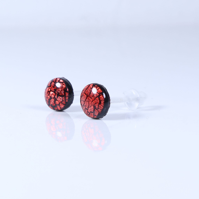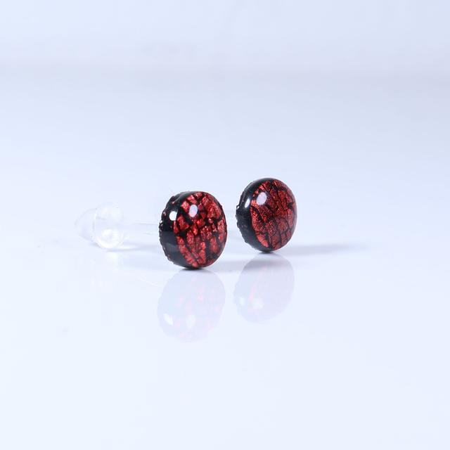 Hypoallergenic Vibrant Electric Cracked Red Black Polymer Clay Plastic Rubber Back Stud Earrings With Designer Carbon Fiber Jewellery Box