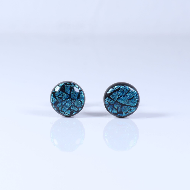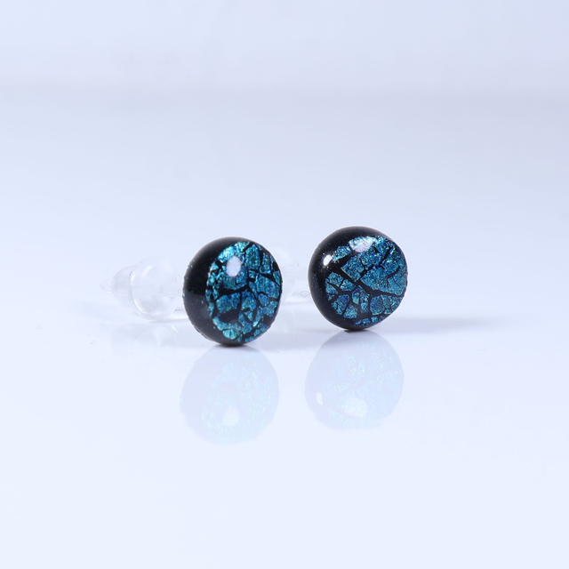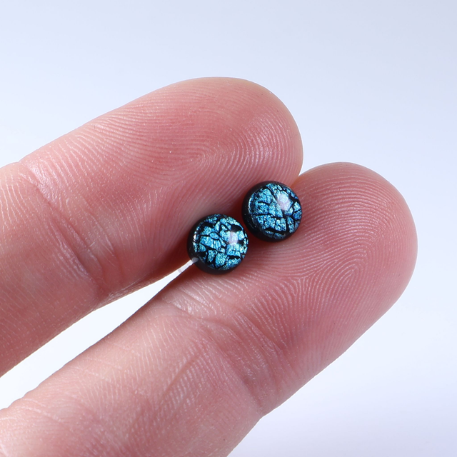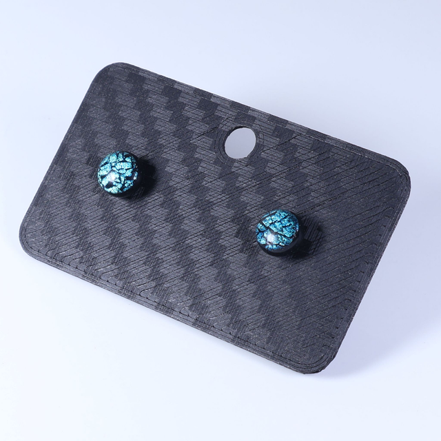Hypoallergenic Vibrant Electric Cracked Teal Black Polymer Clay Plastic Rubber Back Stud Earrings With Designer Carbon Fiber Jewellery Box