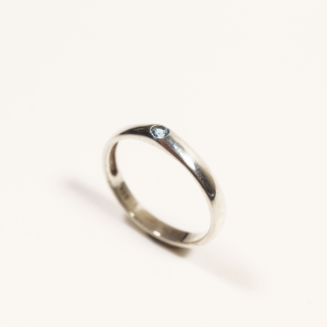 Simple Sterling Silver 925 Minimalist Design Style Small Round Cut Blue Topaz Birthstone Gemstone Band Ring Size O - 7