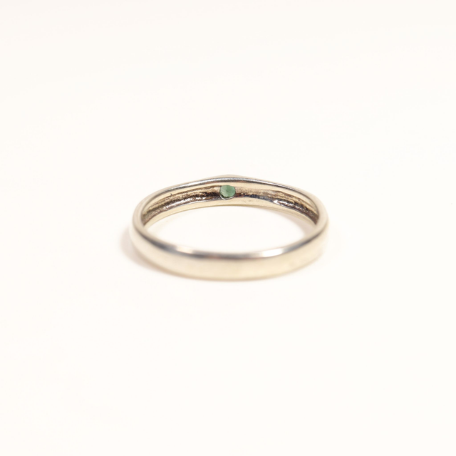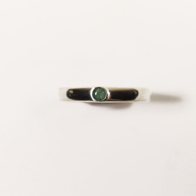 Simple Sterling Silver 925 Minimalist Design Style Small Round Cut Green Emerald Birthstone Gemstone Band Ring Size O - 7