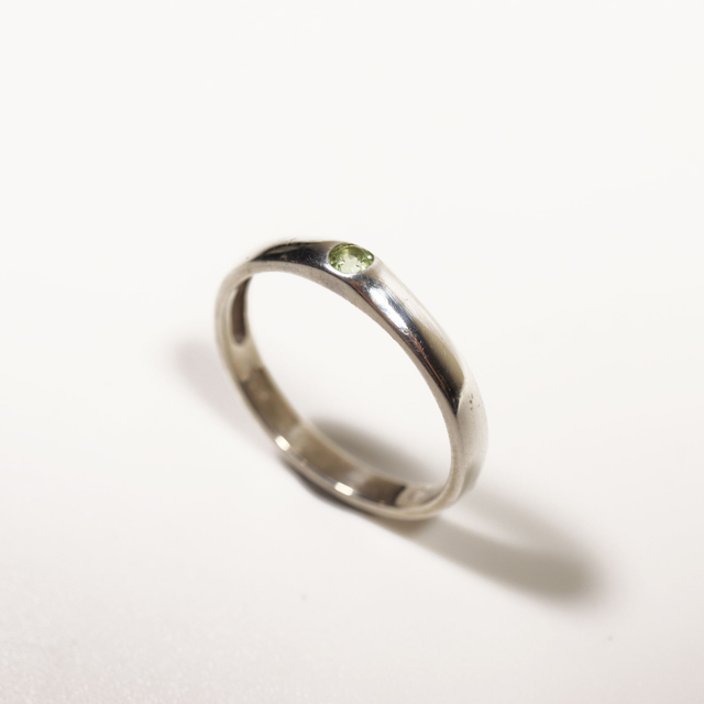 Simple Sterling Silver 925 Minimalist Design Style Small Round Cut Green Peridot Birthstone Gemstone Band Ring Size O - 7