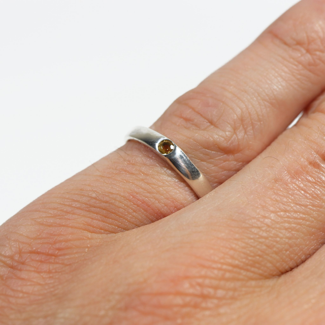 Simple Sterling Silver 925 Minimalist Design Style Small Round Cut Yellow Citrine Birthstone Gemstone Band Ring Size O - 7