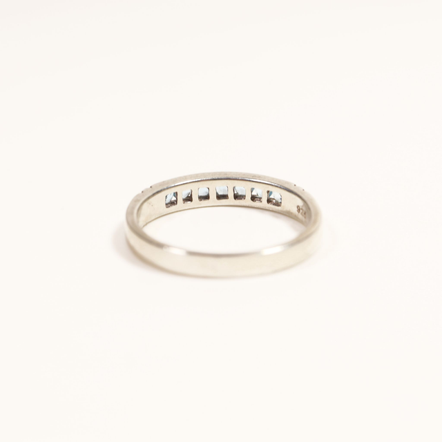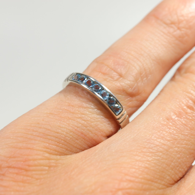 Sterling Silver 925 Minimalist Design Eternity Style Small Round Cut Blue Topaz Birthstone Gemstone Band Ring Size O - 7