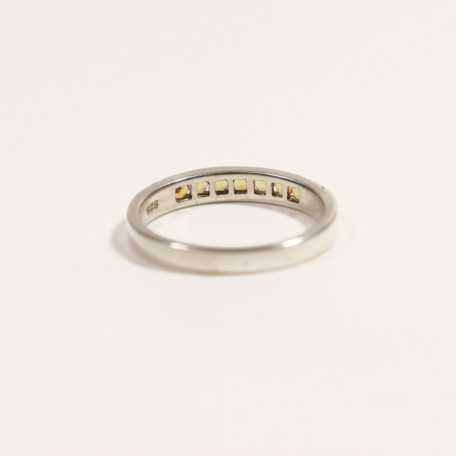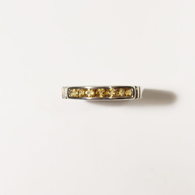 Sterling Silver 925 Minimalist Design Eternity Style Small Round Cut Yellow Citrine Birthstone Gemstone Band Ring Size O - 7