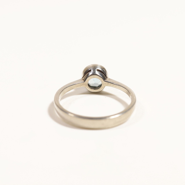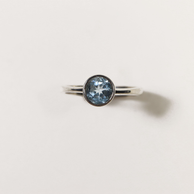 Sterling Silver 925 Minimalist Modern Design Band Round Cut Vivid Blue Topaz Gemstone Birthstone Ring Size N - 6 1/2