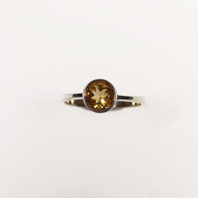 Sterling Silver 925 Minimalist Modern Design Band Round Cut Vivid Oramge Citrine Gemstone Birthstone Ring Size N - 6 1/2
