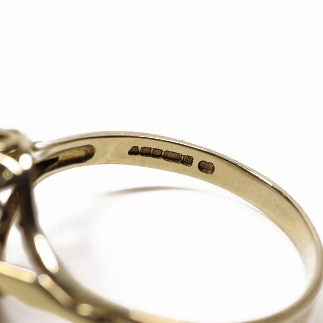 Hallmarks: OJL (makers mark), Rose (Sheffield Assay Office Mark), Crown, 375 (Gold Mark), S (1992 Year Mark) 375 Scales (Common Control Convention Mark)