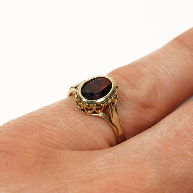 Gemstones: 1x (7x6mm) oval cut garnet