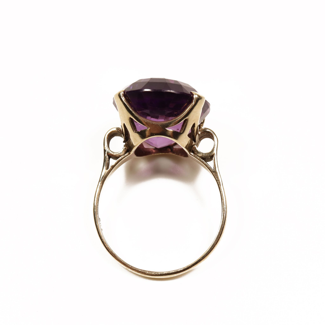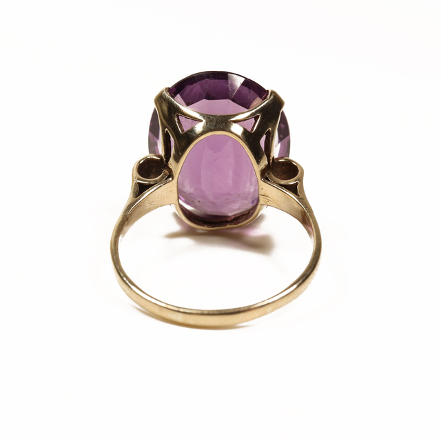 Vintage 9K 9Ct 375 Solid Yellow Gold Oval Cut Vibrant Purple Amethyst Natural Gemstone Cocktail Ring Size S 1/2 - 9 3/8