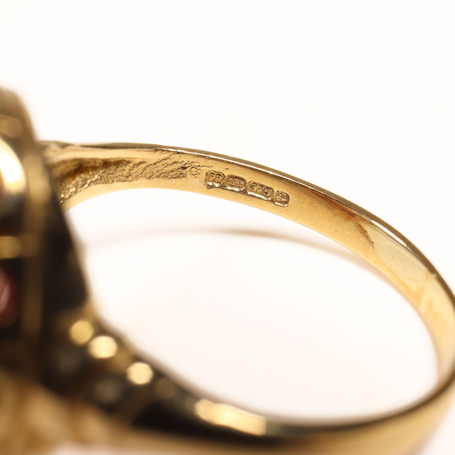 Hallmarks: PR (makers mark), Scales 375, 375 (Gold Mark), Anchor (Birmingham Assay Office Mark)